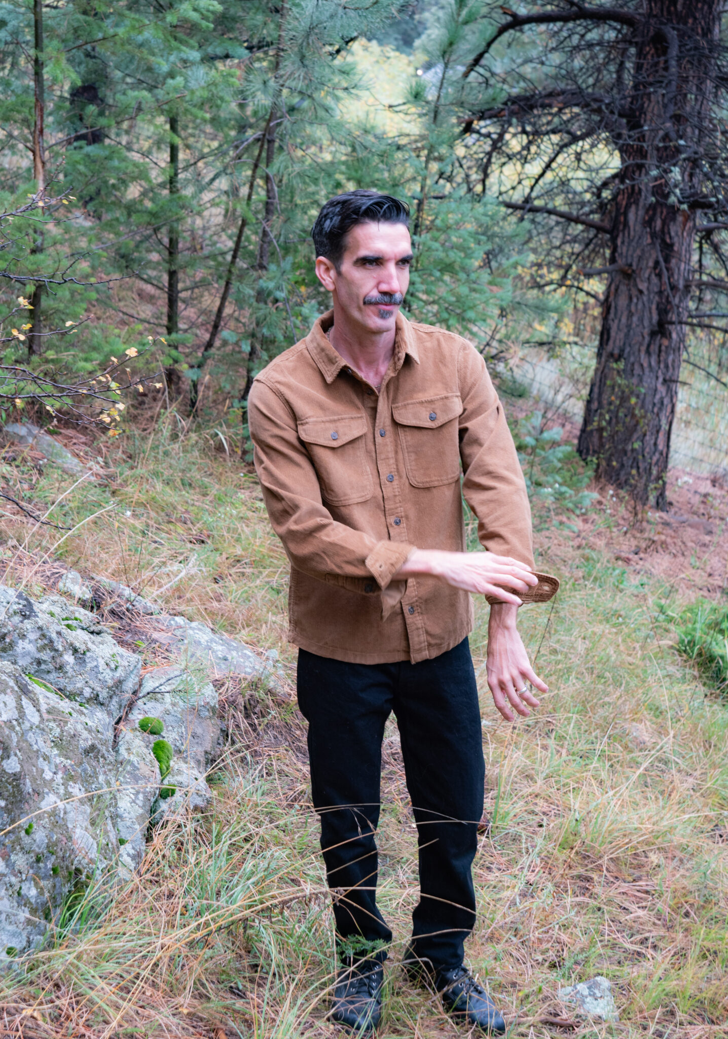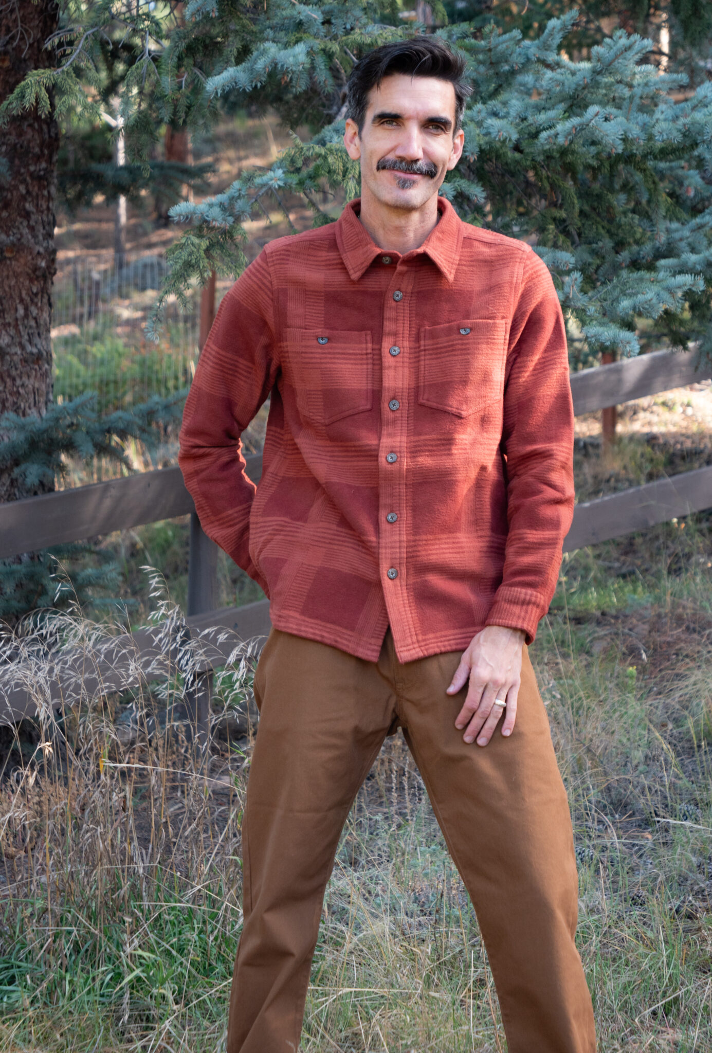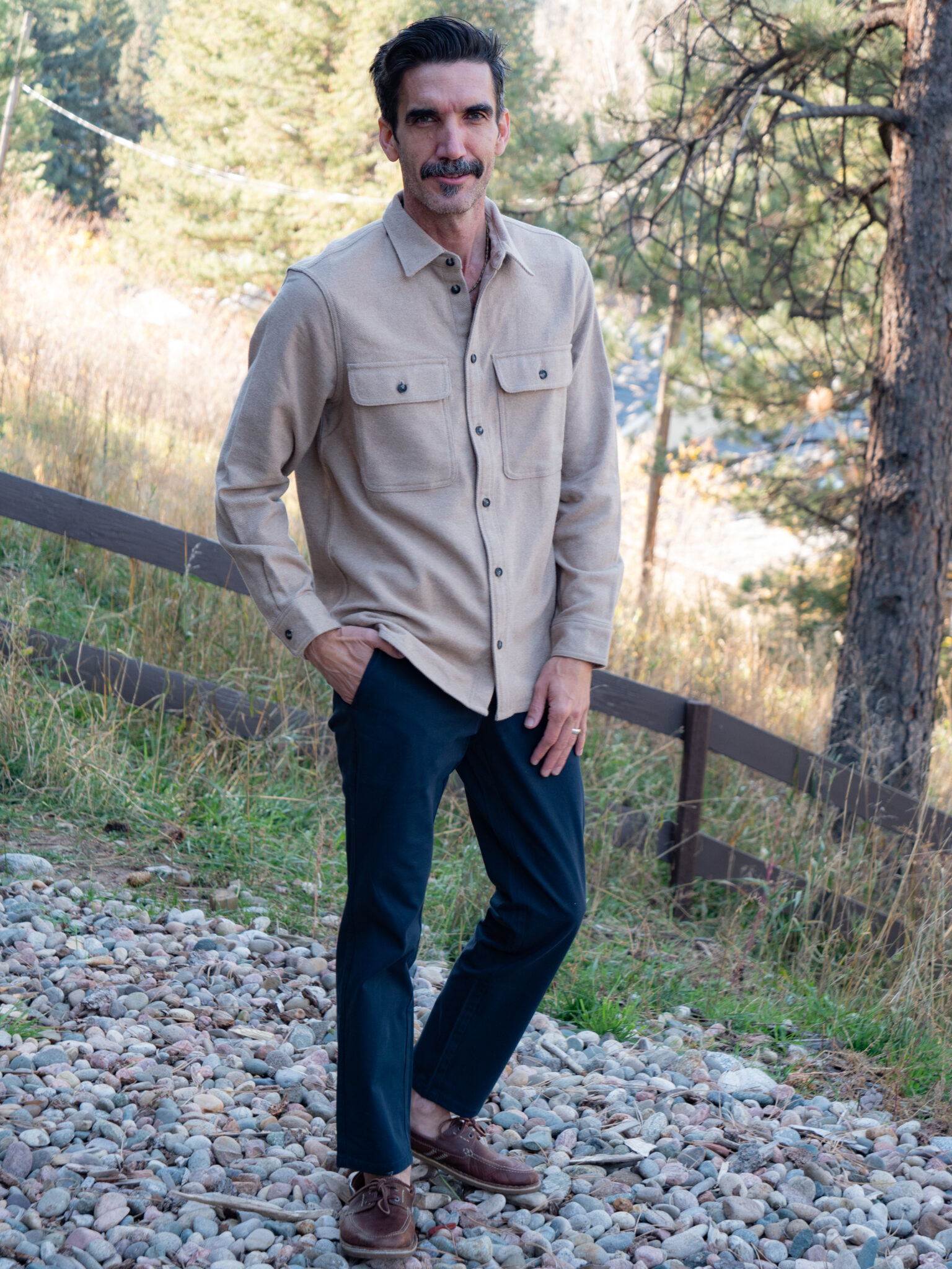 For each of the brands below, Cole considered whether each piece would be seasonally supportive for living in the mountains, along with wearability for less outdoorsy moments. He works from home but prides himself in maintaining a polished appearance, both on Zoom and in his daily life. He leans toward high-quality basics that fit him well and outfits that are not only stylish but also transitional for doing guy stuff in the mountains of Colorado, like walking the dog, chopping wood, or wrestling with the kids. For him, high-quality means he can wear a shirt a hundred times and it will hold up.