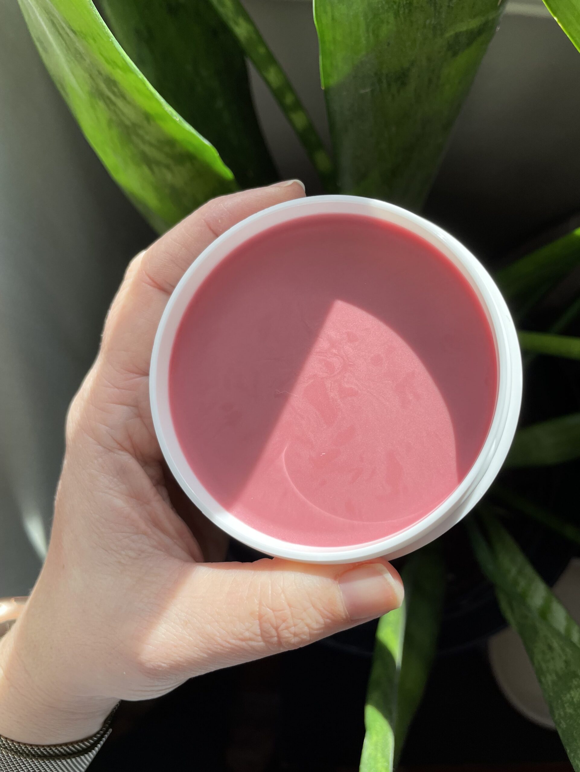 It comes in a wide, shallow tub that I think is going to last me for the rest of my life. It looks like a giant lip balm, but you can’t simply swipe a little bit and go. You *must* break the surface. The pigment will not be activated if it isn’t broken and rubbed into your fingers first. The texture is like hardened coconut oil, so be ready to apply a gentle pressure to really get in there, though it will quickly soften in your hands. There is a very faint, pleasantly citrusy scent. After rubbing it between the pads of your fingers, apply it to your skin in a gentle smoothing and patting motion (the brand provides a ton of videos demoing this). I saw that some people use brushes, but I wouldn’t unless it’s after everything is already on your face and you felt you needed to blend it further.