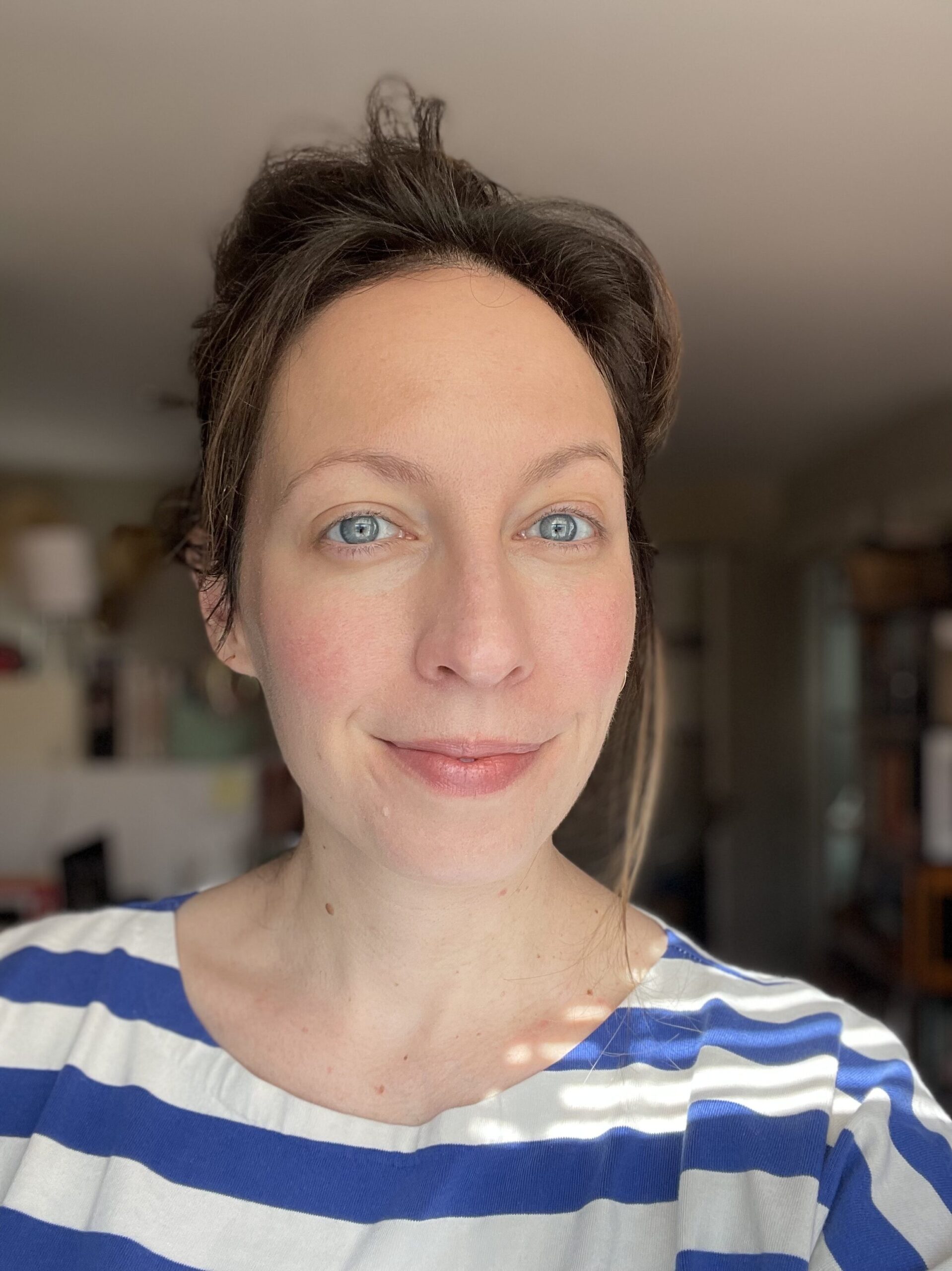 And then a funny thing happened. Preparing for a Zoom one day, I put on what I used to wear to the office (did I mention my daily smoky eye look and winged liner?) and I saw myself in my computer screen and flinched. It looked like stage makeup, clownishly over-the-top. What I had thought was a “natural look” (again — liquid. black. winged. liner. 😅) seemed suddenly garish and excessive. So I washed it all off. It turns out, there wasn’t anything wrong with my face — I just wasn’t used to seeing it bare. Going months without doing my usual makeup routine changed everything for me — especially the desire to change my face so much.